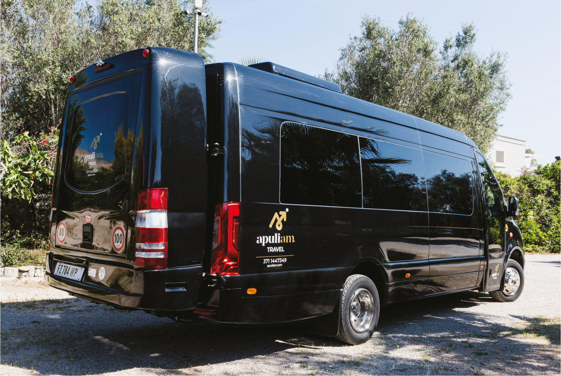 Ci siamo dotati di un minibus Mercedes da 20 posti, versione De Luxe con interni in Alcantara, che mettiamo a disposizione dei nostri clienti con autista h/24. Confortevole, elegante, rispettoso della privacy, è ideale per transfer da/per aeroporti, porti turistici, stazioni ferroviarie.